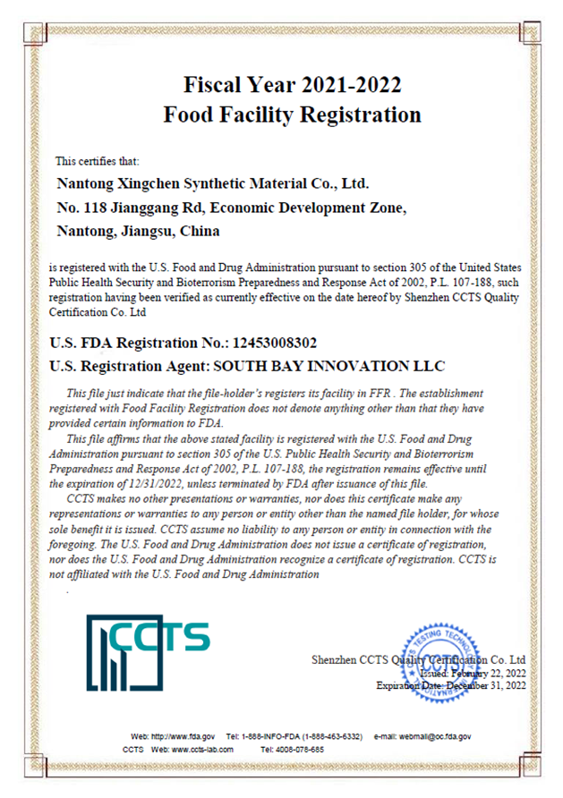 近日,南(nán)通星辰聚苯醚產(chǎn)品通過美國FDA食品接觸材料檢測標準US FDA 21CFR 177.2460,獲得美國FDA認證(zhèng)!至此,南通星辰聚苯醚可作為食(shí)品接觸級材(cái)料進入美(měi)國市場,拓寬了南通(tōng)星辰聚苯醚產品在食品(pǐn)包裝、餐飲器具、醫療器械等領(lǐng)域的應(yīng)用。