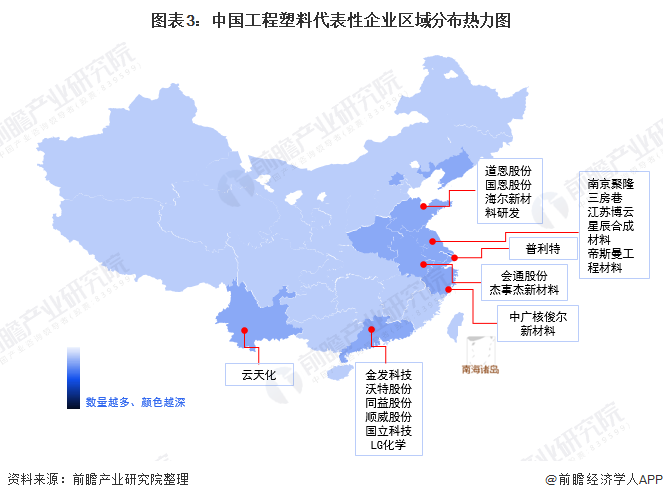 從代表(biǎo)性企業分布情況來看(kàn),工程塑料行業代表(biǎo)性企業分布於江蘇、廣東(dōng)、山東等石化大省,上述地區在產業鏈上、中遊均有行業內上市企業。