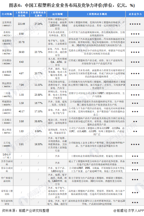 我國工程塑料(liào)企業產品主要應用於新基建、新能源、汽車、電子電氣(qì)、家用電器、消費類電子等領域。其中,金發科技在特種工程塑料領域,是國內特種工程塑料品種最多、產業化規模(mó)最大的企業,具有一定(dìng)的國際影響力;普利特汽車用改性(xìng)塑料產品在國內處於領(lǐng)先水平。