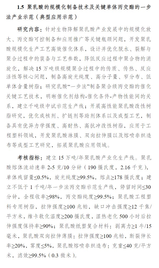聚乳酸生產及應用開發入選科技部“十四五”國家重點(diǎn)研發計劃