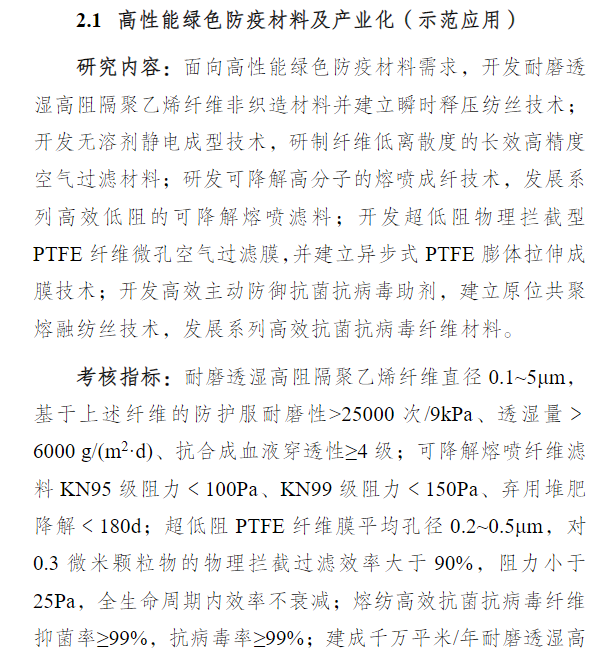 其中,煤炭清潔高效利用技術、先進結構與複合材料、高端功能與智能材料3個重(chóng)點專項均涉及(jí)可(kě)降解材料(liào)。  "聚乳酸規模(mó)化製備技術及關鍵單體丙交酯一步法產業示範",強調,要針對聚乳(rǔ)酸規劃化生產和丙交酯技術進行攻克,還要求加大開發聚乳酸高性能改(gǎi)性樹脂,拓展聚乳酸在淋膜、雙向拉(lā)伸膜(mó)、熔噴布等領域應用。