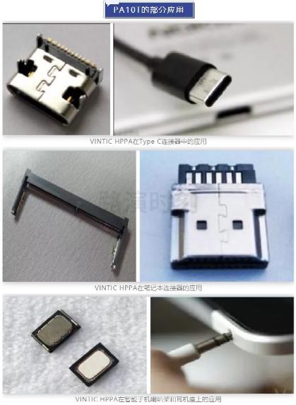 nPA10T突出的(de)耐熱性、超低吸水率、尺寸穩定性、高流動性、適用於薄壁快速成型以及良好的SMT適用性,可(kě)用於(yú)SMT連接器、USB Type C連接器(qì)等電子電氣部件;
