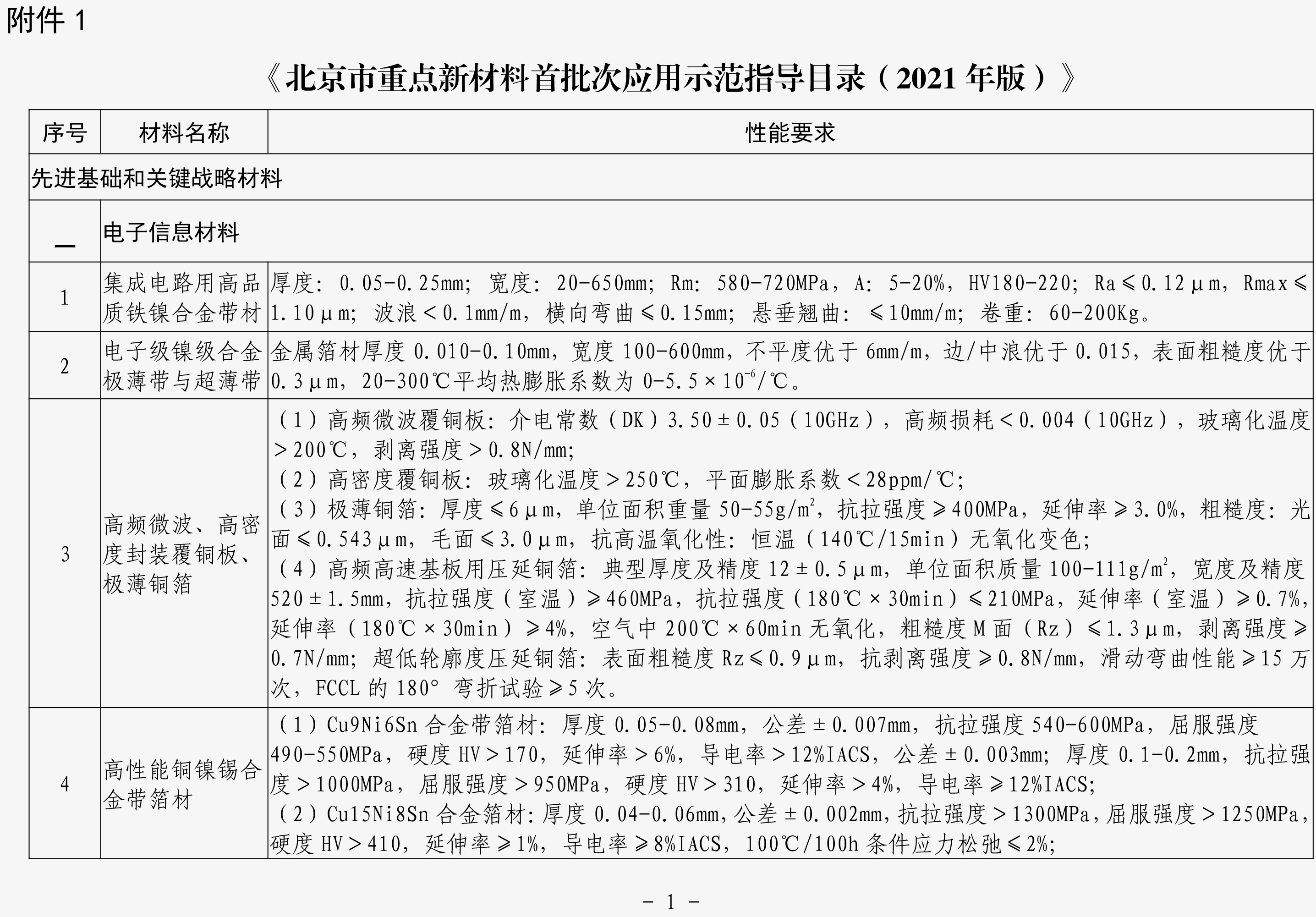 4月25日,北京市經濟和信息化(huà)局發(fā)布(bù)關於印發《北京市重點新材料首批次應用(yòng)示範指導目錄(2021年版)》的通知。《目錄》中包含了六大類、共131種新材料,其中(zhōng)碳纖維/環氧樹脂複合材料、生(shēng)物基增塑劑、P34HB以及聚乳酸3D打印線材等(děng)入選。