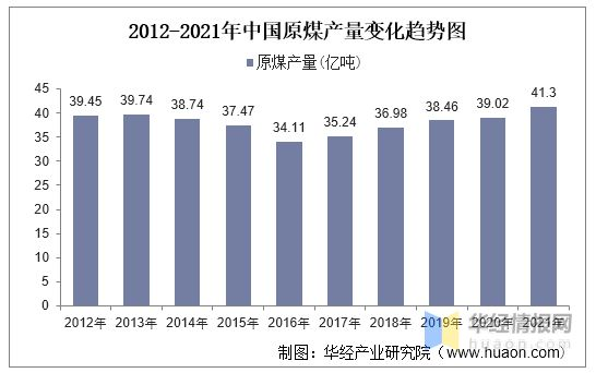 用電石法生產PVC的原材料為煤炭,2012年(nián)以來,我國原煤產(chǎn)量呈現出先下降後(hòu)上升的走勢,據國家統計局數據(jù),2021年全國原煤產量(liàng)達到41.3億噸,較2020年提升2.28億噸。