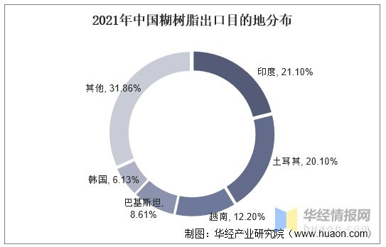 2021年國內累計出口糊樹脂7.7萬噸,其中,2021年出口印度1.63萬噸,占總出(chū)口量的21.1%;出口(kǒu)土(tǔ)耳其1.55萬噸,占比20.1%;出(chū)口越南0.94萬噸,占(zhàn)比12.2%。