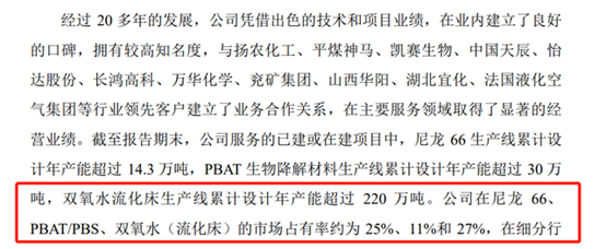 其中,已服務及正在服務的PBAT工程項目累計設計產能達30萬噸,包(bāo)括金暉兆隆2萬噸、甘肅莫高2萬噸、安徽雪郎2萬(wàn)噸、山西(xī)華陽6萬噸、湖北宜(yí)化6萬噸、長鴻高科12萬噸,市場占有率約為11%。