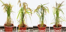 麵對這些常規方法難以解決的問題,華南農(nóng)業大學吳藹民教授團(tuán)隊采用CRISPR/CAS9基因編輯技術,對水稻(dào)UXE(UDP-木(mù)糖差向(xiàng)異(yì)構酶)和XAT(木聚糖阿拉伯糖基轉移酶)部分基因進(jìn)行敲除,獲得了三個部分敲除(chú)UXE和XAT基因(yīn)的雙突(tū)變體,結果發現(xiàn)突變體中木聚糖中側鏈阿拉(lā)伯糖(táng)含量大大降低,纖維素結晶度降低,使得細胞壁結構鬆動,增加了纖維素酶的(de)可及性,從而使得細胞壁都更(gèng)易被處理(lǐ)破壞。這項研究通過基因(yīn)改造降低了秸稈處(chù)理的難度,為秸稈回收處理增加了更多的(de)可能性。