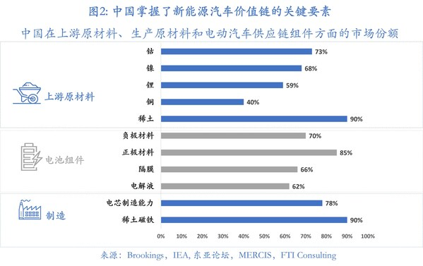 在這(zhè)場價格戰中,在中國的整車廠受益於國家對電(diàn)動汽車價值鏈關鍵成本要素的控製,包括從鈷、鎳和稀土等重要原材料到電(diàn)池的(de)基本組件(圖2)。例如,中國目前擁有全球近(jìn) 80% 的鋰電池產能,並繼續以驚人的(de)速度擴張,平均每周建設一座電池超級工廠[5]。未來五年(nián)內,中國仍將作為主要(yào)的鋰電池供應商,通過產能增加滿足全球電動車的市場(chǎng)需求。