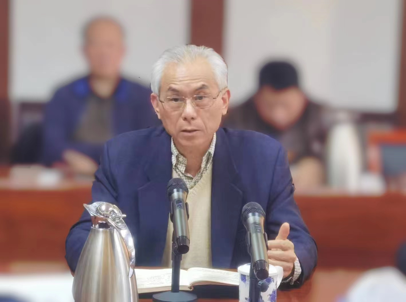 圖為石化聯合會黨委書記李雲(yún)鵬同誌談學習體會
