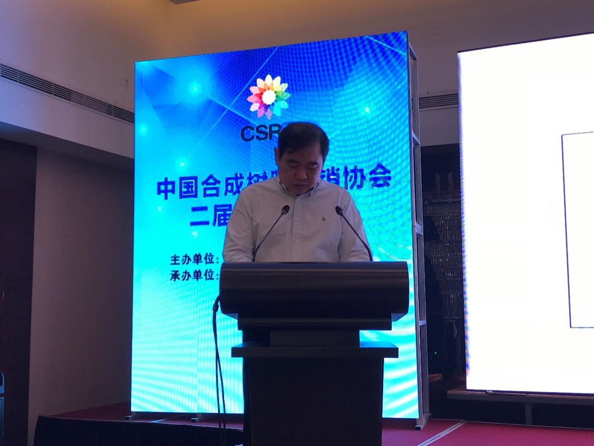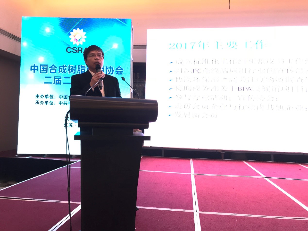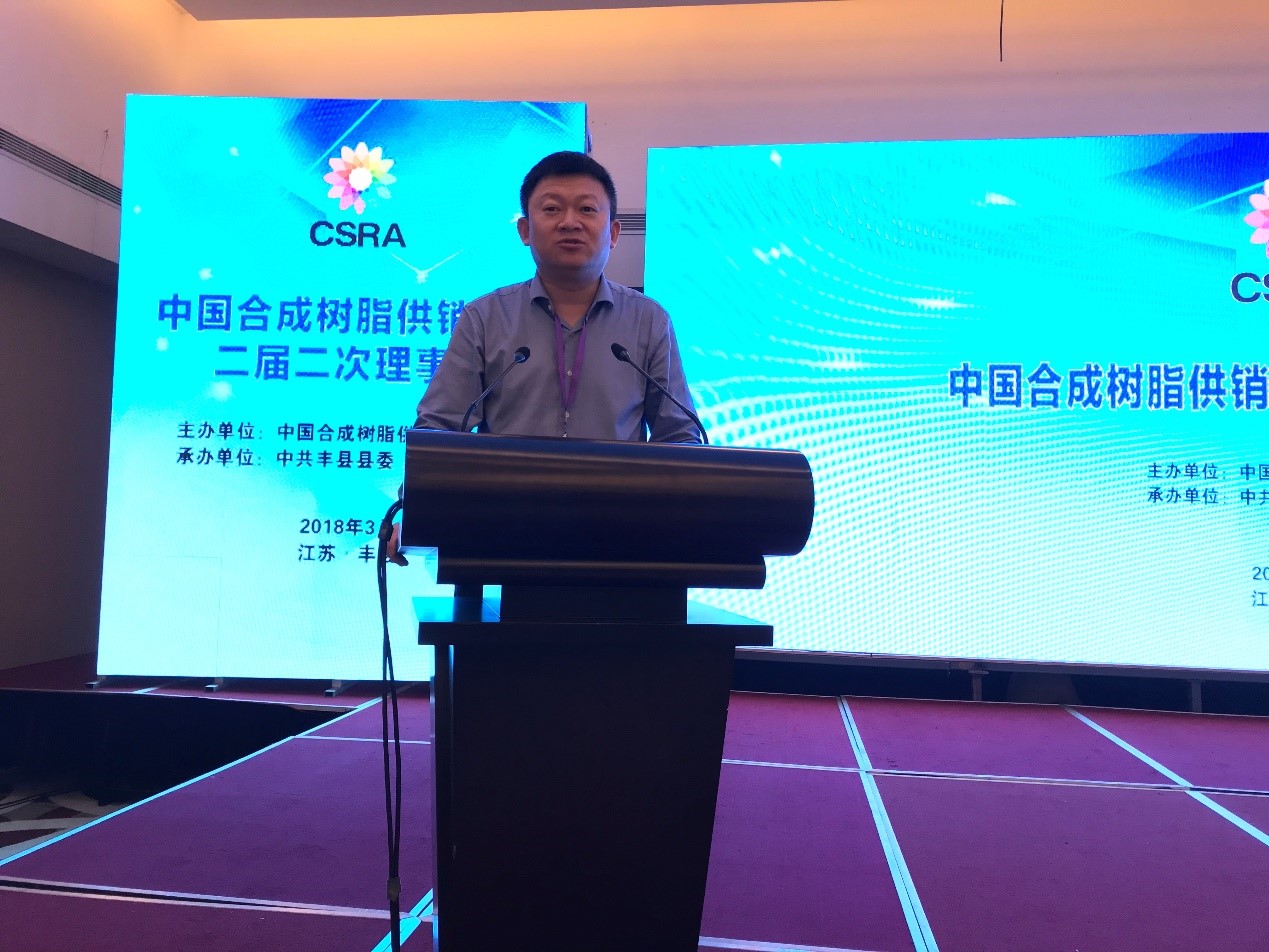中國草莓污视频樹脂供(gòng)銷協會副理事長何翔做(zuò)《2017年協會(huì)工作總結》