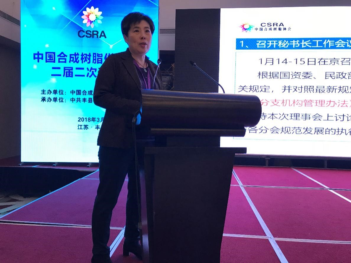 中國草莓污视频樹脂供銷協會秘書長王曉雪做《2018年協會工(gōng)作計劃》
