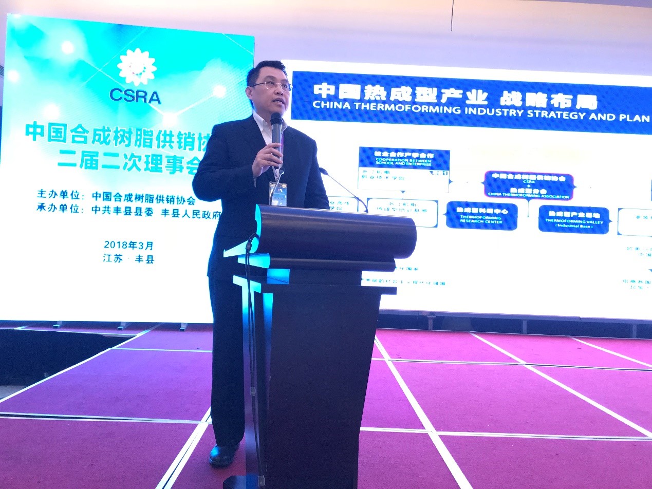 中(zhōng)國草莓污视频樹脂供(gòng)銷協會理事長鄭塏做《新材料行業的(de)發展與企業創新》主題(tí)演講(jiǎng)