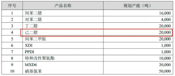 公示信息顯示,該項目總投資(zī)548266萬元,項目主要建設年產(chǎn)20萬噸氫(qīng)氰(qíng)酸、年產30萬(wàn)噸己二腈裝(zhuāng)置等。建成(chéng)後年產己二腈30萬噸、甲基戊二腈5.88萬噸、硫銨16.77萬噸。