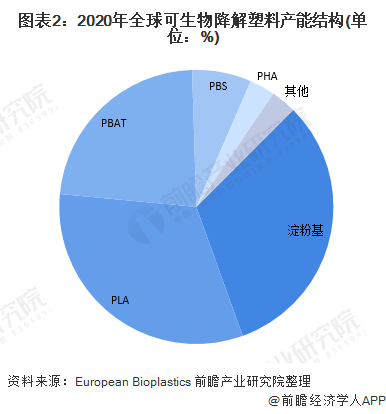 根據European Bioplastics數據,PLA和澱粉基塑料為主要可生物降解塑料。2020年,全球可生物降解塑料產能以澱粉(fěn)基降(jiàng)解塑(sù)料最高,占比達32%,PLA、PBAT分別占全球市場的32%和23%。