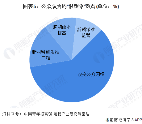 根據中國青年報官微對“限塑令”難點的(de)調研,有59.7%的受訪(fǎng)者認為(wéi)“改變(biàn)公眾習慣”,16.8%的受訪者認為“新材料研(yán)發(fā)推廣(guǎng)難(nán)”,12.7%的受訪者(zhě)選擇“購(gòu)物成本提高”,10.7%的受(shòu)訪者表示“新領(lǐng)域難監管”。因此,鼓勵企業進(jìn)行生產可降解(jiě)塑料的生產以(yǐ)及讓(ràng)消費者主動采用新型環保塑料製品是(shì)推行“限(xiàn)塑(sù)令(lìng)”的關鍵因素。