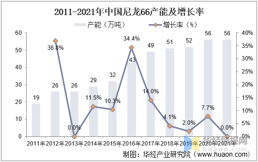 2011-2021年中國尼龍66產量及增(zēng)長率
