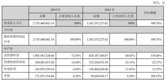 2019 年,世界經濟形勢(shì)複(fù)雜多變、增(zēng)長持續放緩,國內(nèi)經濟(jì)下行壓力加大,但我國經濟穩(wěn)中向好、長期向好的基本趨勢沒有(yǒu)改變。公司所處的新材料領(lǐng)域創新步伐加快,下遊主要應用領域汽車工業、家電行業產銷不及預期,行業競爭更加(jiā)激烈。麵對不確定(dìng)性因素,公司管(guǎn)理層按照年初製定的發展目(mù)標,堅持戰略引領(lǐng),發揮公司(sī)的技術優勢、產品協同優勢、管理優勢推動公司(sī)高質量發展,公司銷售增長態勢良好(hǎo),業績穩步上升。公司繼續保持熱塑性彈性體、熔噴料等細分領域的競爭優勢,保持國內第(dì)一的領先地位。