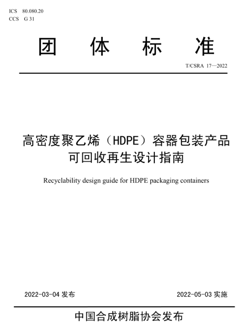 《HDPE容器包裝產品可回(huí)收再生設計指(zhǐ)南》