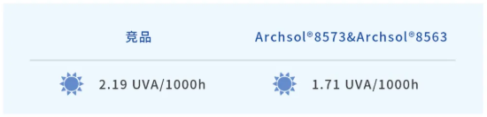 可在戶外施工使(shǐ)用,經過UVA光線照射測試1000小時,顏色變(biàn)化(huà)優於市場競品。