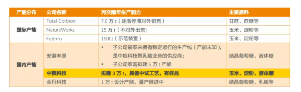 因此我們測算(suàn),至2025年,對(duì)應(yīng)100萬(wàn)噸聚乳酸原材料,或存至(zhì)少200億(yì)元丙交酯市場規模;至我國目前已公(gōng)布聚乳酸產能假設可全部投(tóu)產,則前述市場(chǎng)規模存(cún)翻倍可能。而(ér)我國目前丙交酯產能(néng)不足10萬噸,這意味(wèi)著,我國丙交酯市場同樣是(shì)一個5年(nián)有望增長(zhǎng)10倍的高速發展市場,且競爭壁壘較聚乳酸市場更高、入局(jú)難度更大,有能力進入丙交酯市場的企(qǐ)業將在行業(yè)發展進入成熟期前享有較聚乳酸市場更好的利潤分享機製。